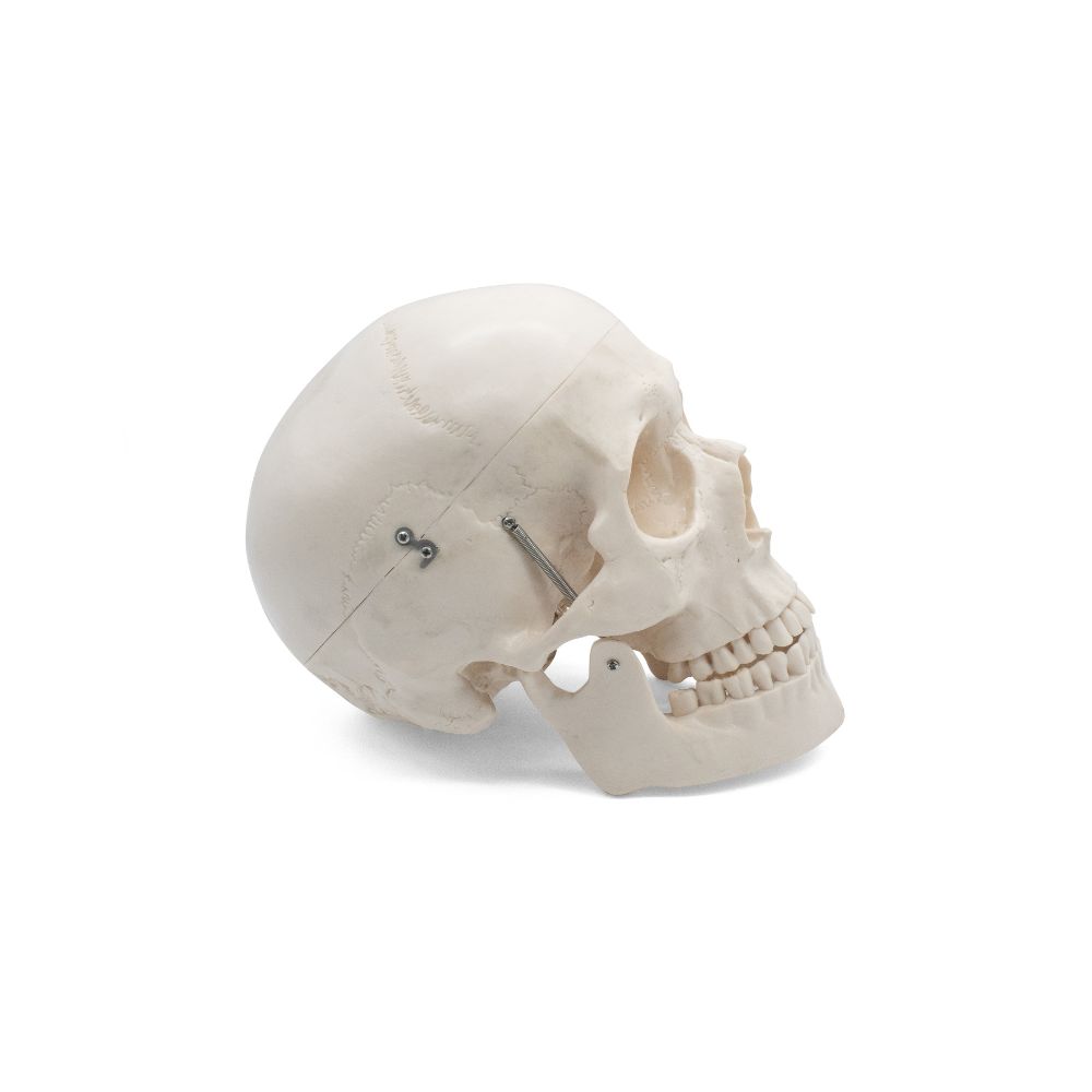 Cráneo compuesto de 22 piezas de huesos con líneas de sutura cerrada que se marcan, ideal para la enseñanza de fisiología; ayuda a estudiar la morfología y construcción del cráneo.