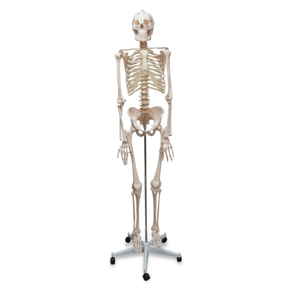 Esqueleto de tamaño real, ideal para la enseñanza fisiológica; ayuda a comprender la relación entre la figura del cuerpo humano y el esqueleto y el estudio morfológico de los huesos y construcción de las articulaciones con ligamentos.