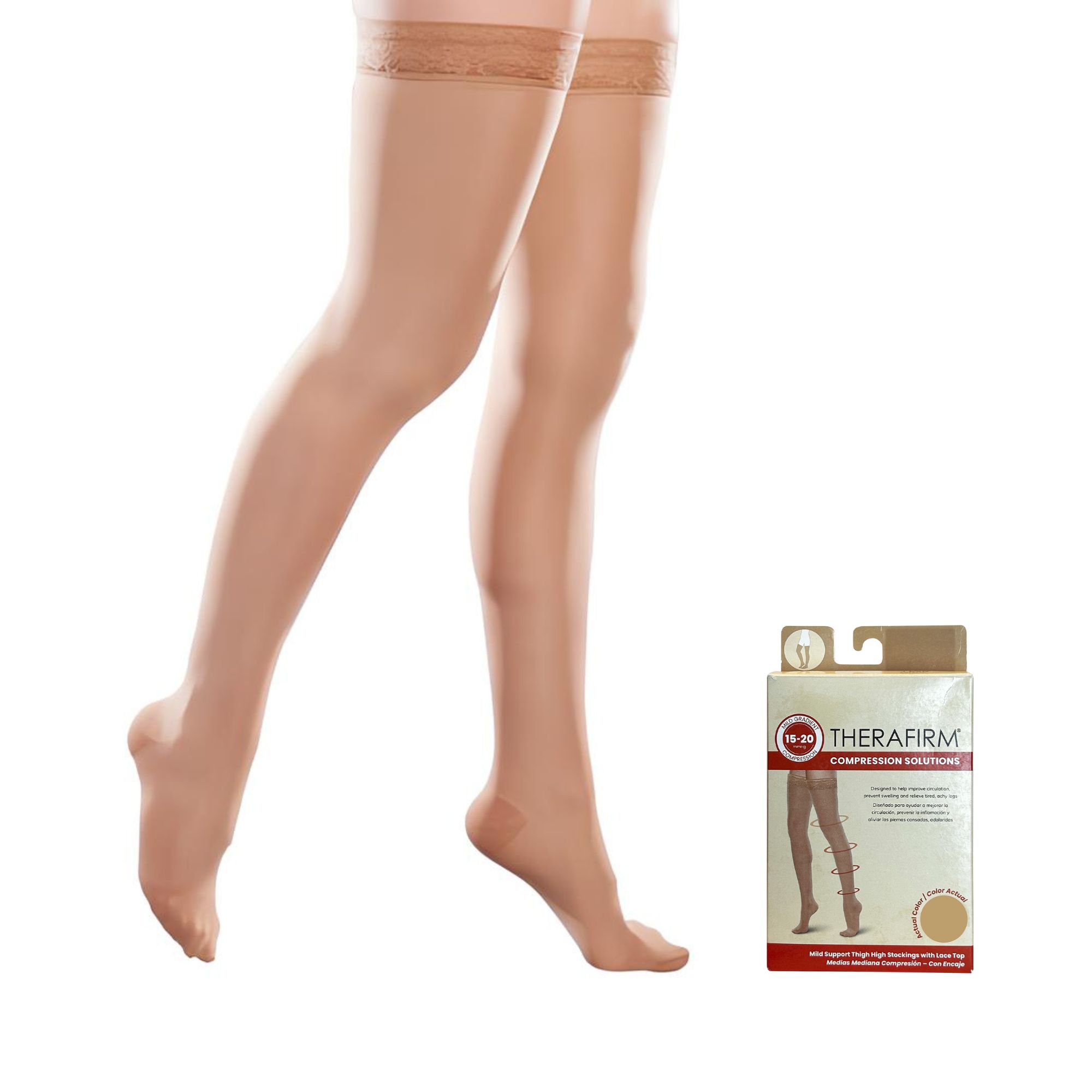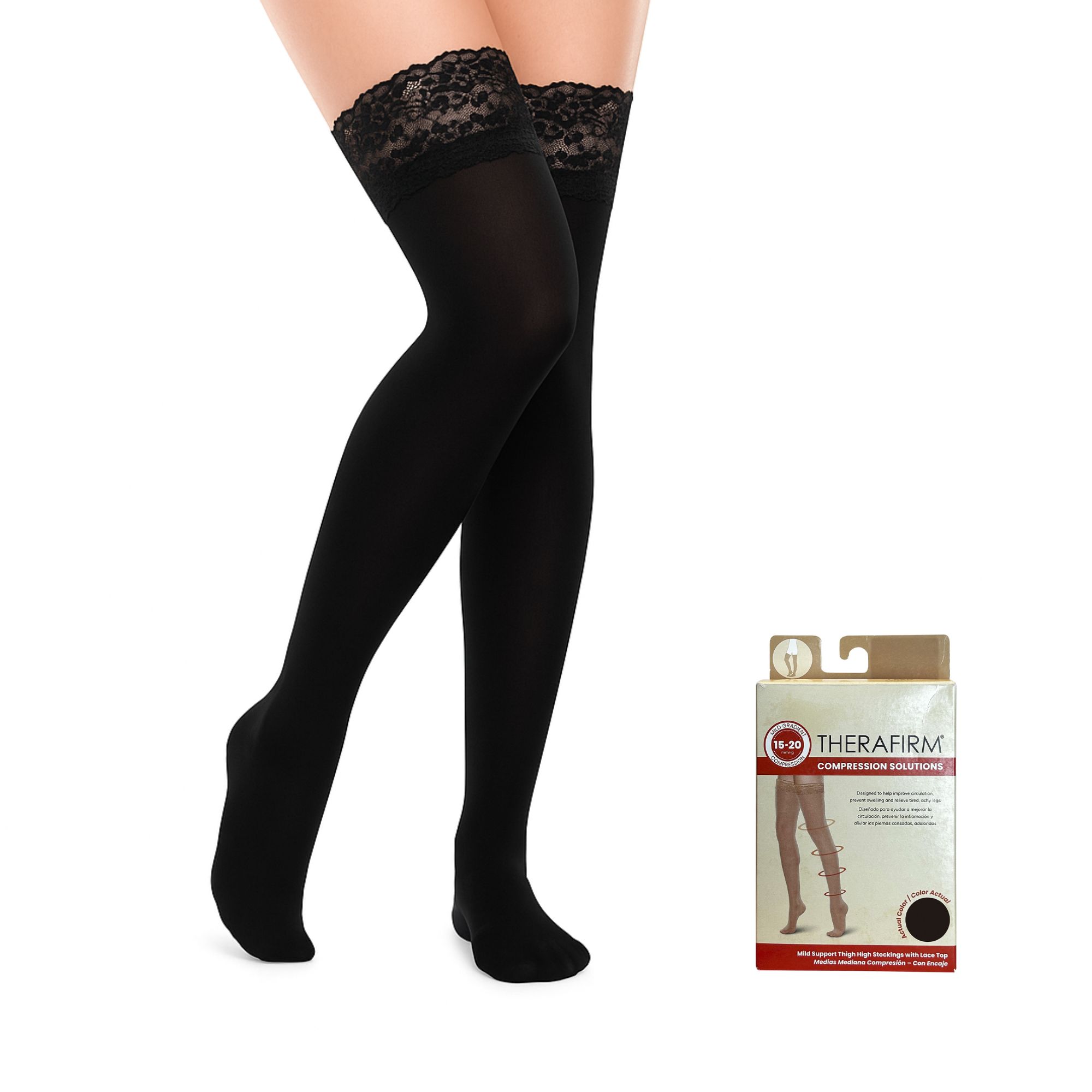Con banda de encaje superior que ofrece sujeción cómoda y evita que la media se enrrolle.