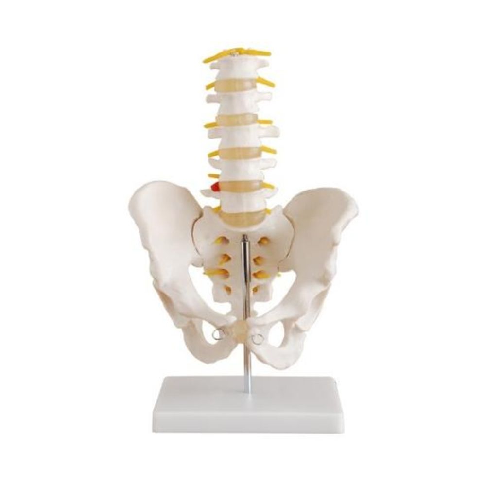 Pelvis con 5 vértebras lumbares tamaño real, ideal para la enseñanza de fisiología; ayuda a comprender la morfología y construcción de la pelvis humana y vértebras.